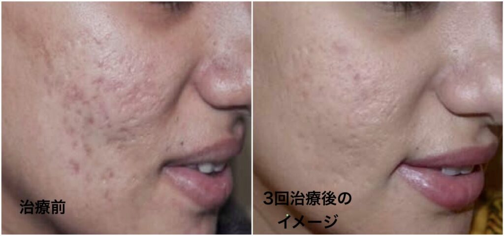 クレーター(凹み)は、完治はしませんが、目立たなくなることを目標にします。